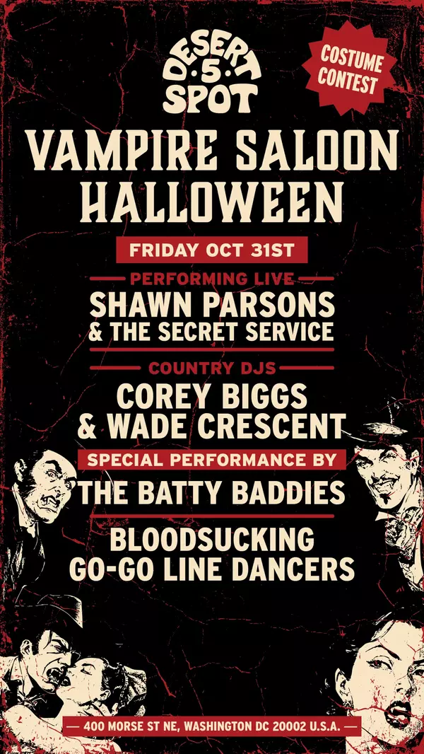 DC’s new rodeo hotspot is adding some ghoulish fun to their hangout for country music lovers. On Halloween, Desert 5 Spot DC will transform into a Vampire Saloon, where cowboys and gals can come dressed in their best costume to win a prize and two-step to live music (Fri, $20, Union Market).